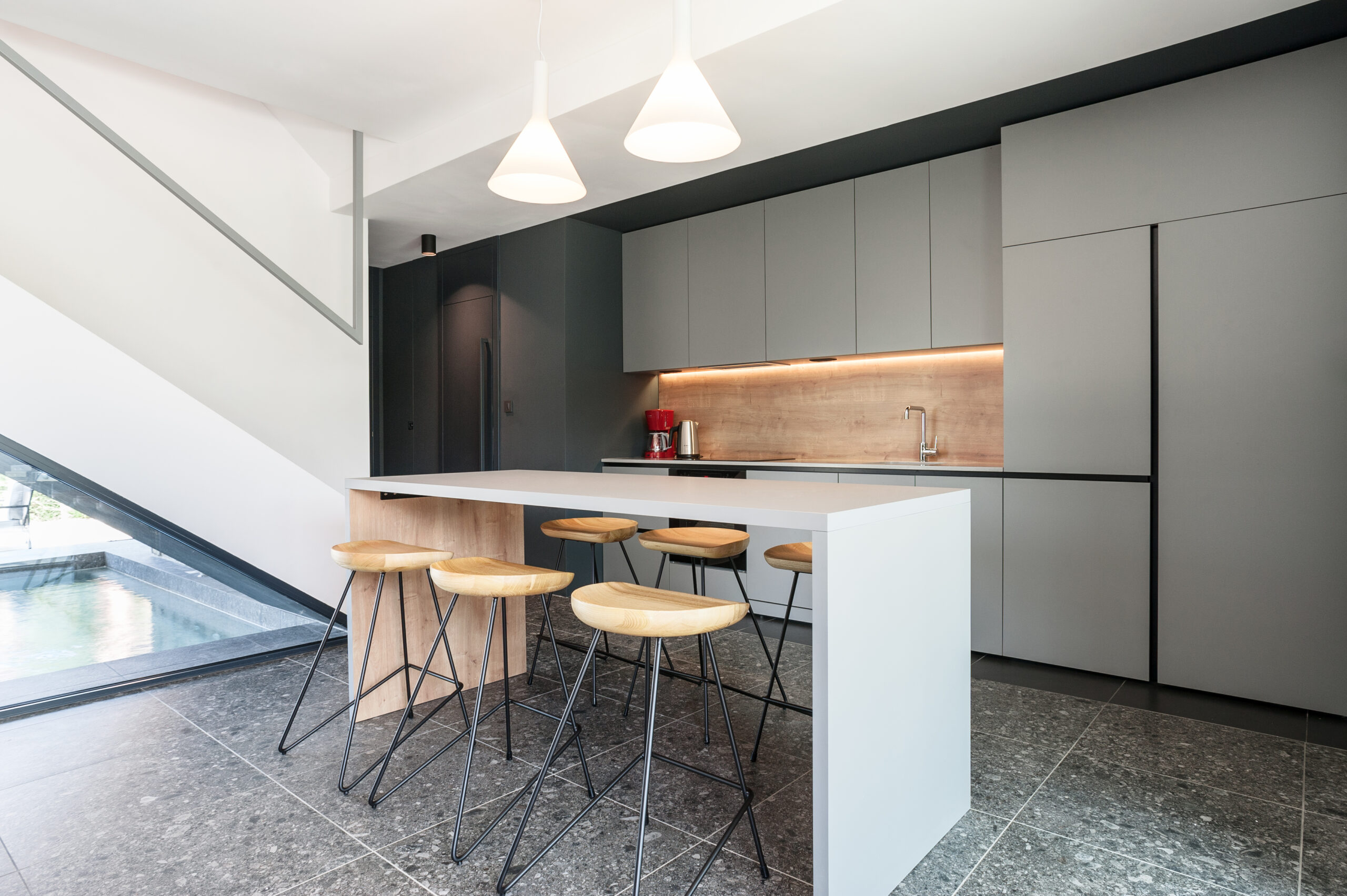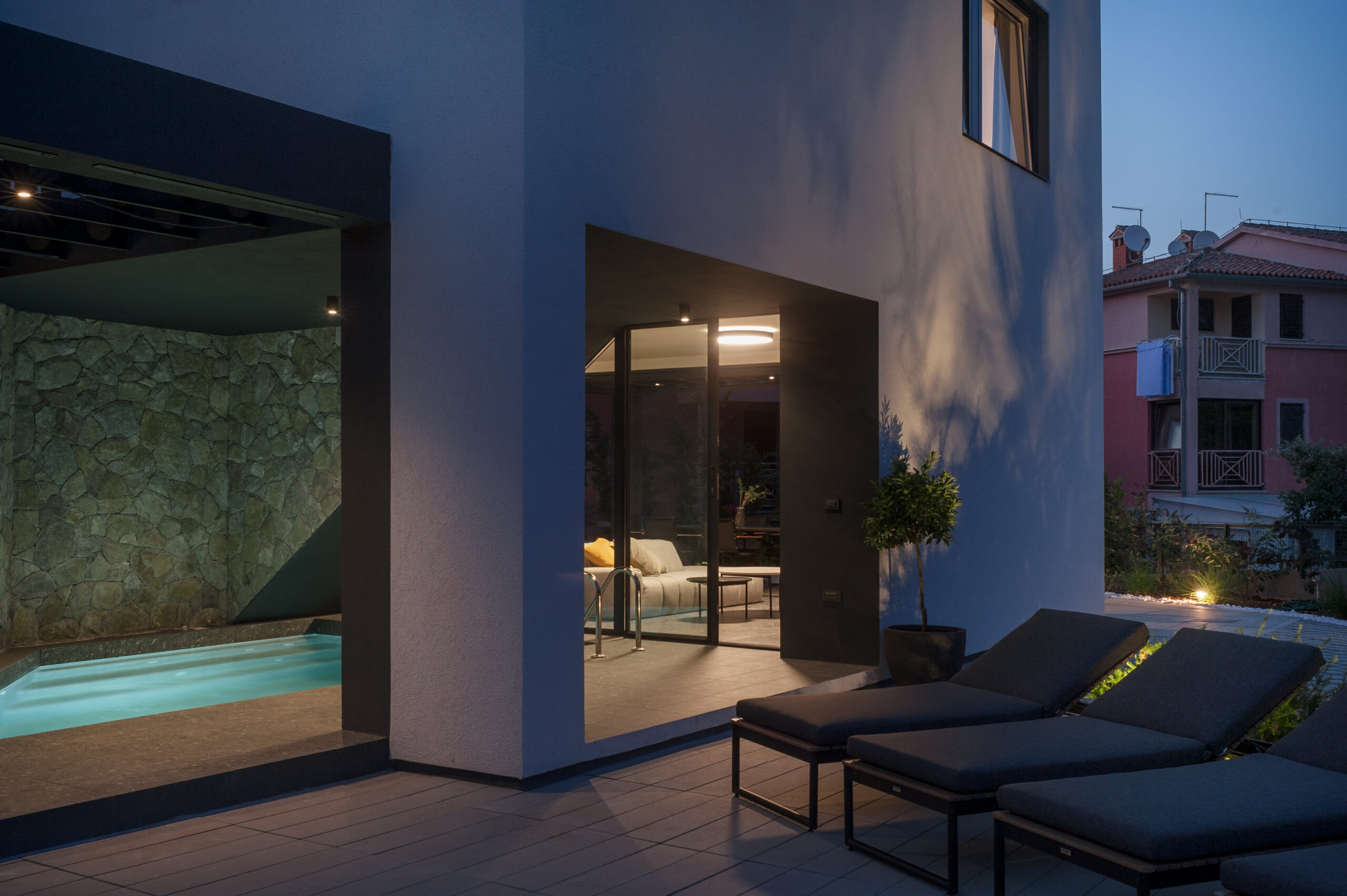 The project includes semi-detached houses in two separate buildings, located only 3km from Sea and Poreč city center. All houses are built under the quality standards of a luxury hotel. Each house has an area of 130 sqm, with three rooms and a big hall for everyday living. Some of the features of the project include private heated pool, large terraces, large number of natural light slits, fixtures made on wood and elegant interior design.